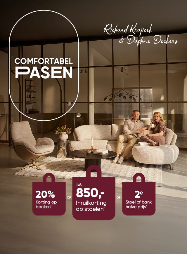 Elke dag werken we bij Prominent met plezier en passie aan onze missie: de mooiste stoelen en banken maken die écht lekker zitten en je ultiem zitcomfort bieden. Van relaxfauteuils en sta-op-stoelen tot hoekbanken, modulaire banken en ruime 2- en 3-zitsbanken—elk meubelstuk is ontworpen met ultiem zitcomfort in gedachten.