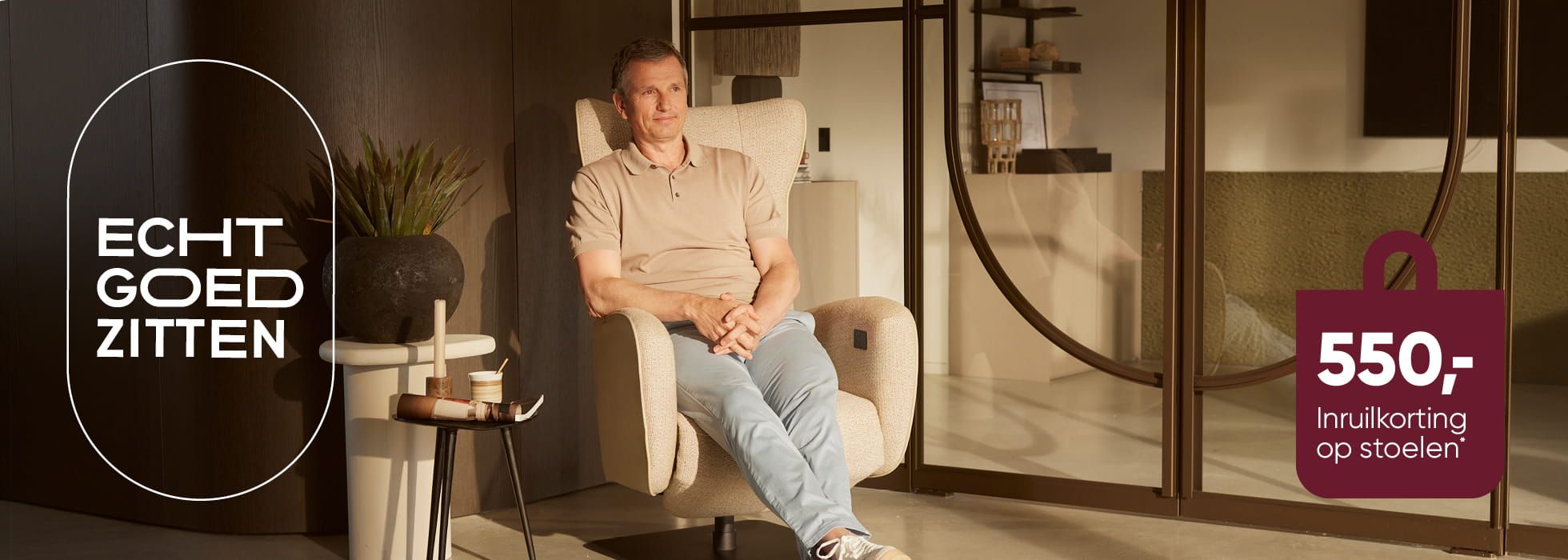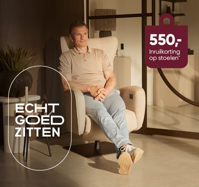 Ontspannen zoals jij dat wilt? Dat kan in de E-chair. Een relaxstoel die je moeiteloos in jouw ideale stand zet en je lichaam de rust geeft die het verdient. En nu is het hét moment: tijdens de campagne profiteer je van 150,- extra comfortkorting. Extra comfort, extra voordeel.